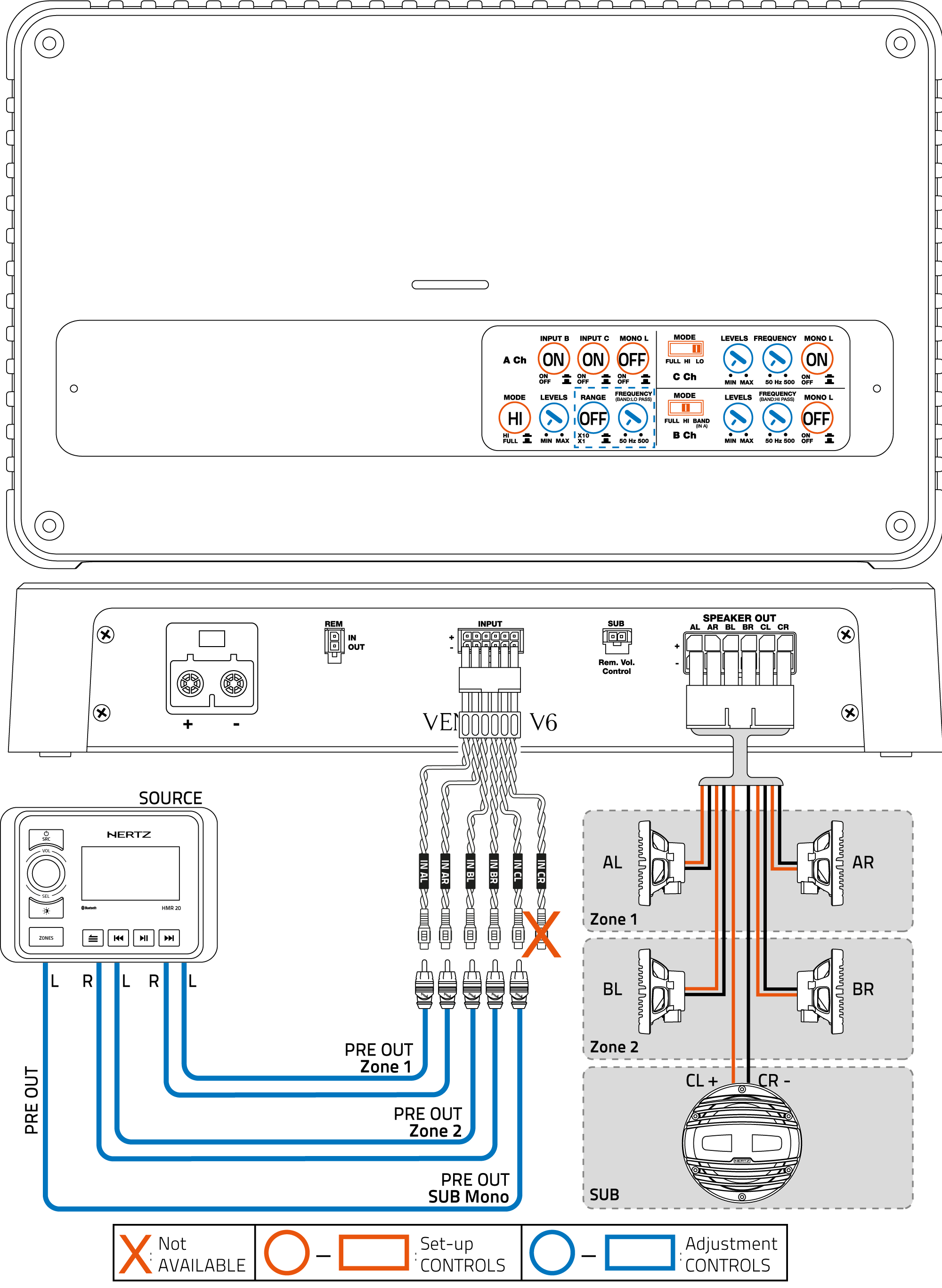 6. INSTALLATION EXAMPLES Matteo Kalogris 23 March 2023 15:12 Updated ◼︎Venezia V6◼︎Venezia V6 24V 1. 6Ch OUT (2Ch IN): COAXIALS 2. 6Ch OUT (6Ch IN): COAXIALS 3. 5Ch OUT (6Ch IN): COAXIALS + SUB (Stereo IN) 4. 5Ch OUT (5Ch IN): COAXIALS + SUB (Mono L IN) Related articles 4. INPUT / OUTPUT CONNECTION AND SUBWOOFER REMOTE VOLUME CONTROL 7. BLOCK DIAGRAMS 5. CONTROLS 6. INSTALLATION EXAMPLES 1. PACKAGING CONTENT